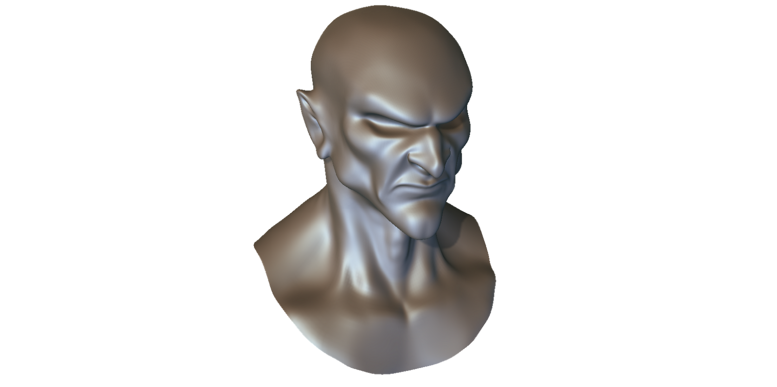 | I then added in more depth, increasing the polygons and added in deeper eye socks, more detailed ears and mouth, and also added a muscular neck |